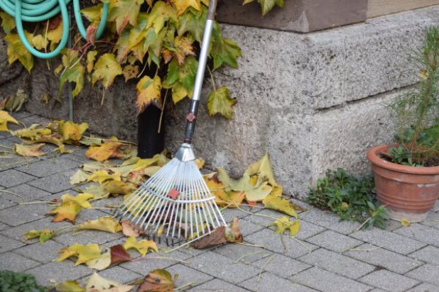 Auf Wegen muss das Herbstlaub weg da sonst schnell zu einer Rutschpartie werden kann