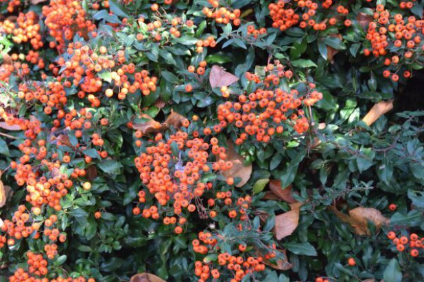 Orannge Früchtee des Feuerdorns Hingucker und Nahrung